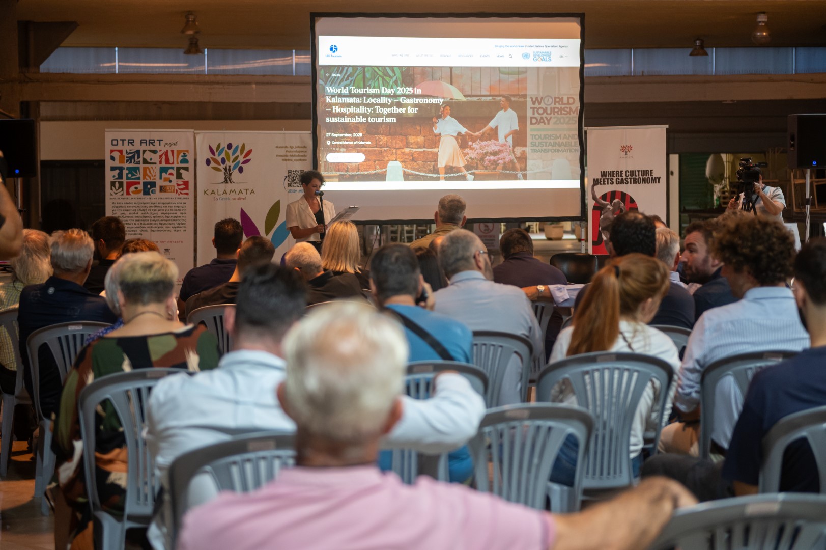 Το Σάββατο 27 Σεπτεμβρίου 2025 ο Δήμος Καλαμάτας, σε συνεργασία με το Επιμελητήριο Μεσσηνίας, την Ένωση Ξενοδόχων Μεσσηνίας, τον Σύλλογο Καταστημάτων Εστίασης και Αναψυχής Καλαμάτας, την Ένωση Μεσσηνίας και τον Πολιτιστικό Οργανισμό «Δρόμοι της Ελιάς», διοργάνωσε εκδήλωση στην Κεντρική Αγορά Καλαμάτας με αφορμή την Παγκόσμια Ημέρα Τουρισμού, που φέτος είχε θέμα του UNWTO «Tourism and Sustainable Transformation».