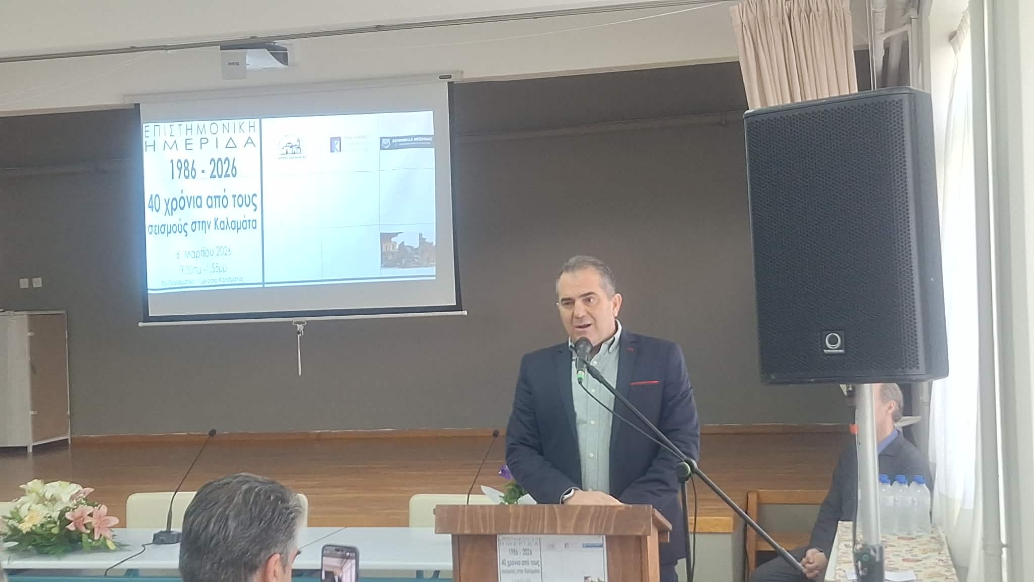 Επιστημονική Ημερίδα με θέμα: “1986-2026: 40 χρόνια από τους καταστροφικούς σεισμούς της Καλαμάτας” πραγματοποιήθηκε την Παρασκευή 6 Μαρτίου το 7ο Πειραματικό Γυμνάσιο Καλαμάτας, υπό την αιγίδα του Δήμου Καλαμάτας.