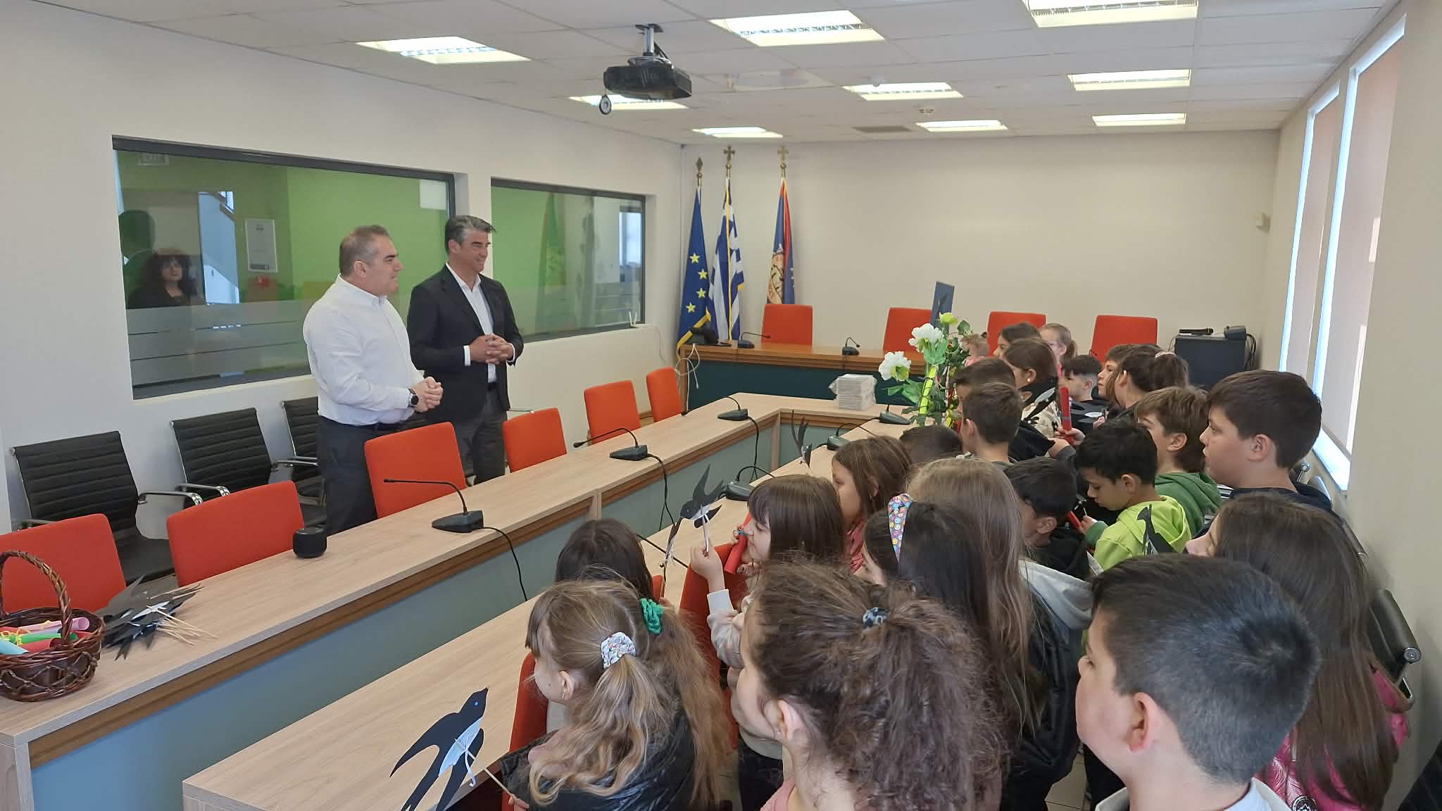 Μια όμορφη ατμόσφαιρα, γεμάτη παιδικές φωνές και χαμόγελα, στο Δημαρχείο της πόλης, δημιούργησαν μαθητές του 14ου Δημοτικού Σχολείου Καλαμάτας, σήμερα Παρασκευή 20 Μαρτίου 2026.
