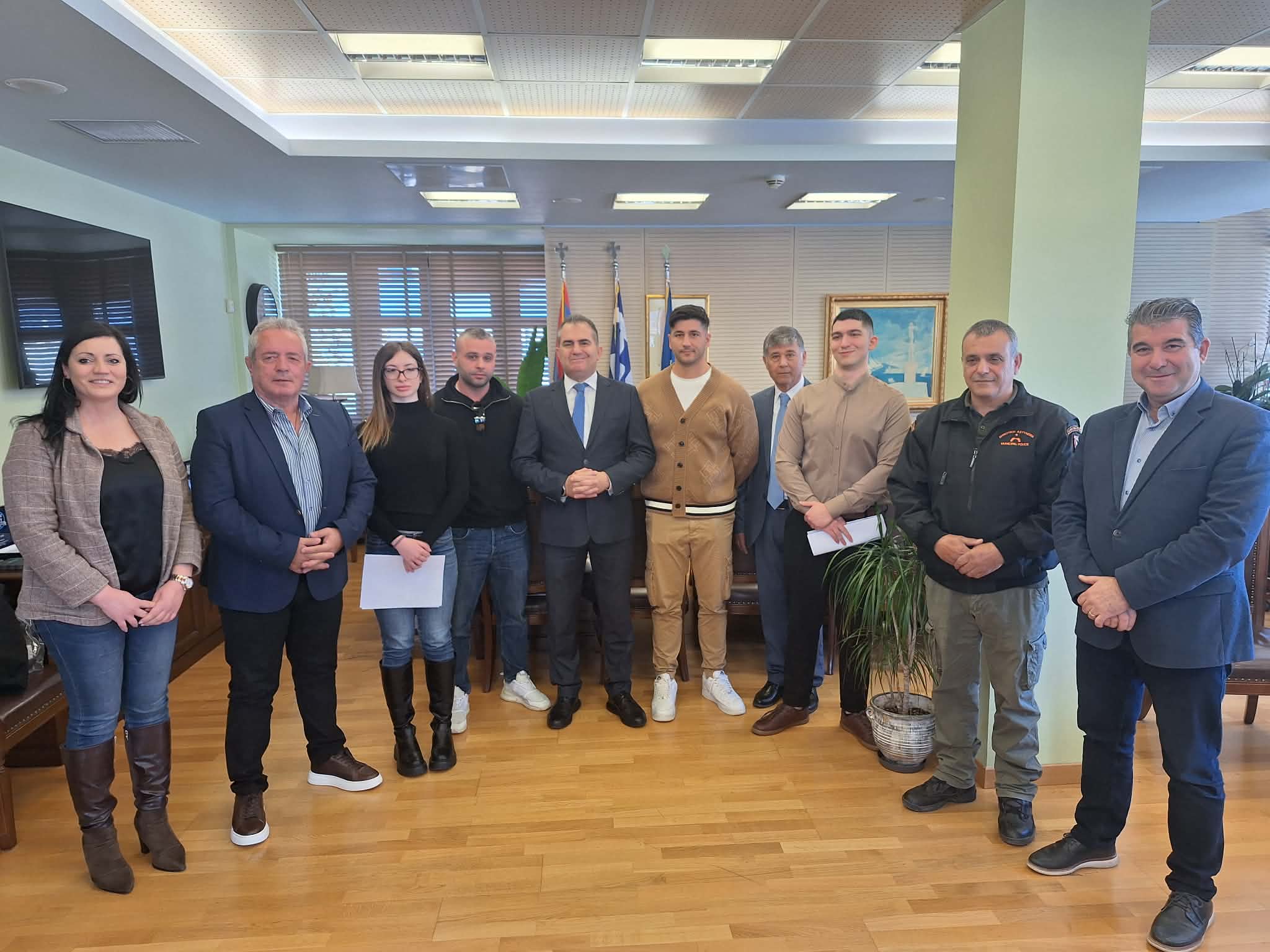 Ο Δήμαρχος Θανάσης Βασιλόπουλος αμέσως μετά την ορκωμοσία, παρουσία του Προέδρου του Δ.Σ. Αναστάσιου Ηλιόπουλου, των Αντιδημάρχων Σαράντου Μαρινάκη και Κώστα Παπαδάκη και του Διευθυντή της Διεύθυνσης Δημοτικής Αστυνομίας Γιώργου Πετρόπουλου, ευχήθηκε στους νέους υπαλλήλους που ενισχύουν το δυναμικό του Δήμου, καλή σταδιοδρομία.