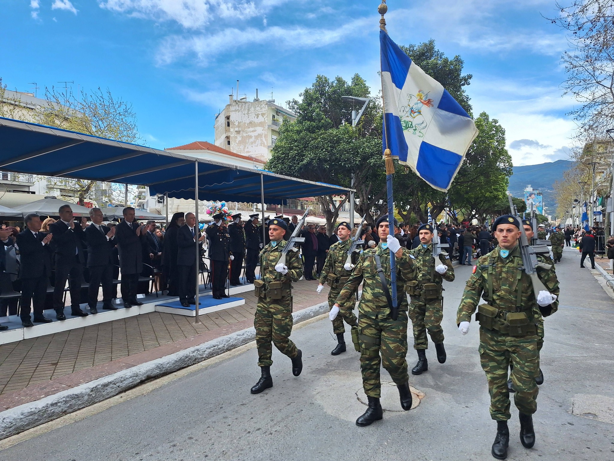 Υπό τους ήχους εμβατηρίων, τα τμήματα Δημοτικών, Γυμνασίων και Λυκείων, των οποίων πολλά μέλη ήταν ντυμένα με παραδοσιακές φορεσιές, καθώς και εκείνα των Πολιτιστικών και Τοπικών Συλλόγων με τις πολύχρωμες παραδοσιακές ενδυμασίες, πολλές από τις οποίες είναι σωστά καλλιτεχνήματα, όπως και αντιπροσωπείες κοινωφελών Σωματείων παρήλασαν τιμώντας τους Ήρωες του 1821 και αποσπώντας δίκαια το χειροκρότημα.