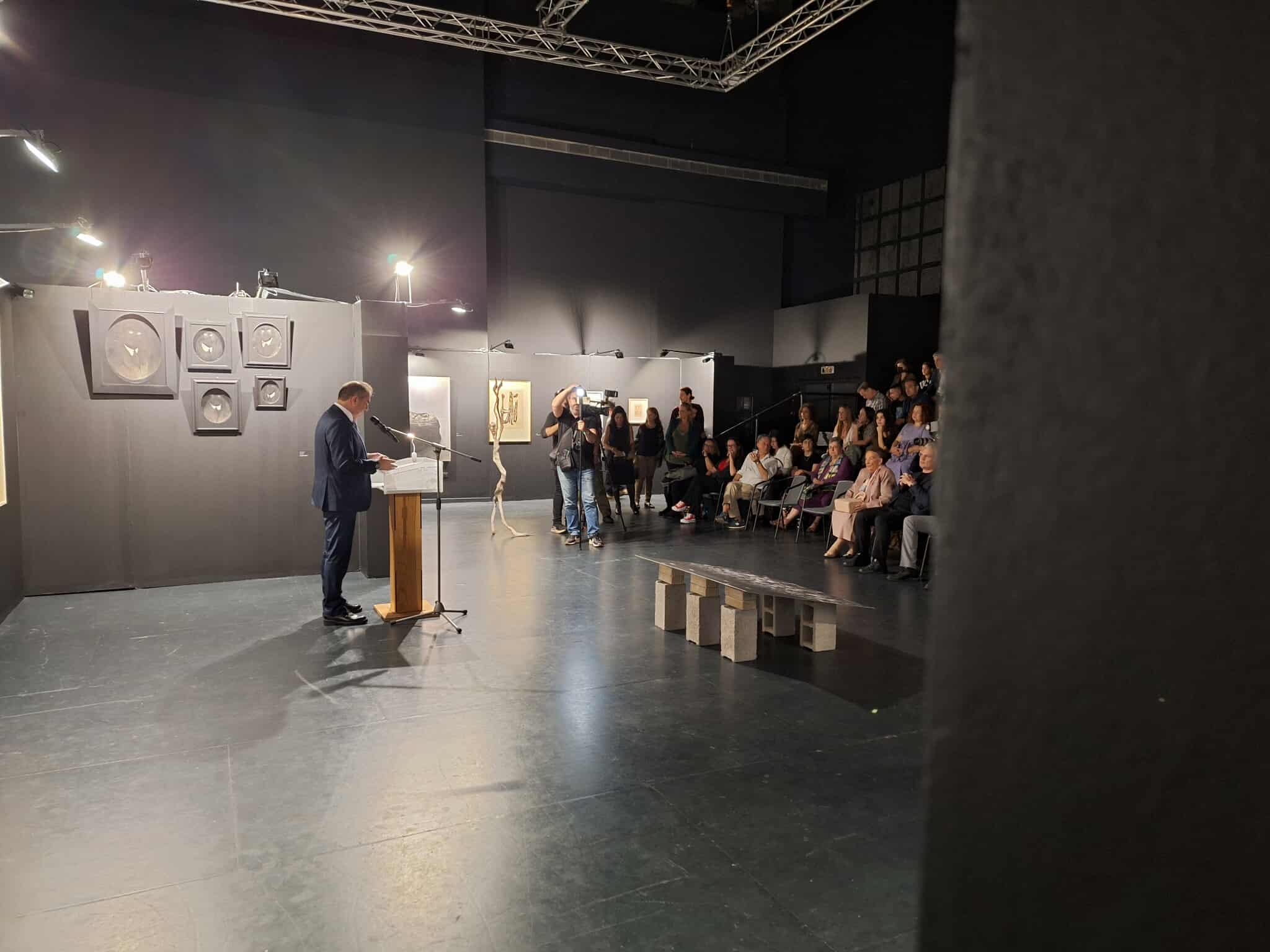 Την σπουδαία έκθεση παρουσίασαν ο καλλιτεχνικός διευθυντής του Εικαστικού Τομέα της Κ.Ε. Φάρις Παναγιώτης Λαμπρινίδης και η επιμελήτρια της έκθεσης Άρτεμις Ποταμιάνου.