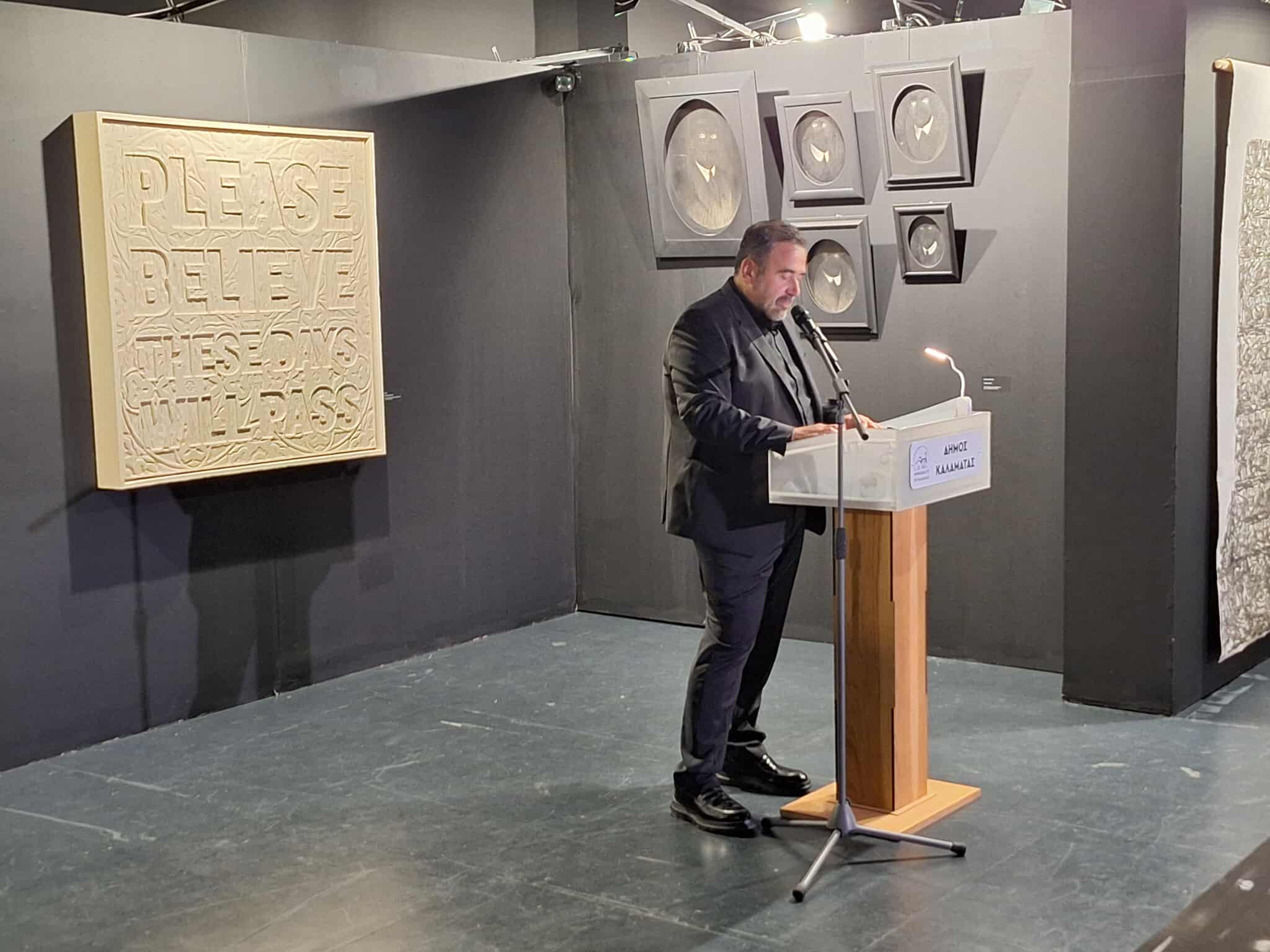 Κατά τον χαιρετισμό του, ο Περιφερειάρχης υπογράμμισε ότι «στη φύση, στην ιστορία, στην κοινωνία και στην ανθρώπινη εμπειρία, τα αντίθετα στοιχεία συνυπάρχουν και δημιουργούν», ενώ σημείωσε πως τέτοιες πρωτοβουλίες αποτελούν «στιγμές εξωστρέφειας που αποδεικνύουν ότι η Πελοπόννησος διεκδικεί ενεργό ρόλο στον σύγχρονο πολιτιστικό χάρτη, με ποιότητα, δυναμισμό και αισθητική».