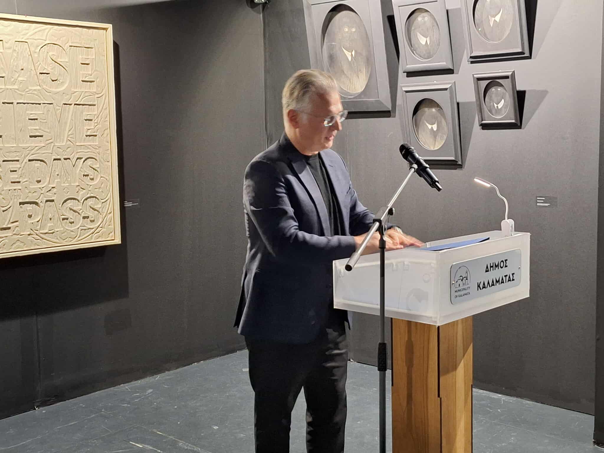 Κατά τον χαιρετισμό του, ο Περιφερειάρχης υπογράμμισε ότι «στη φύση, στην ιστορία, στην κοινωνία και στην ανθρώπινη εμπειρία, τα αντίθετα στοιχεία συνυπάρχουν και δημιουργούν», ενώ σημείωσε πως τέτοιες πρωτοβουλίες αποτελούν «στιγμές εξωστρέφειας που αποδεικνύουν ότι η Πελοπόννησος διεκδικεί ενεργό ρόλο στον σύγχρονο πολιτιστικό χάρτη, με ποιότητα, δυναμισμό και αισθητική».