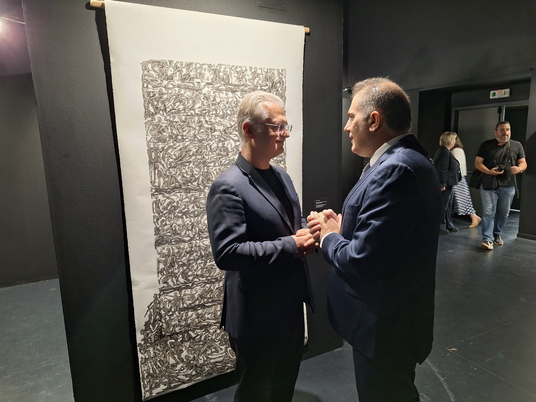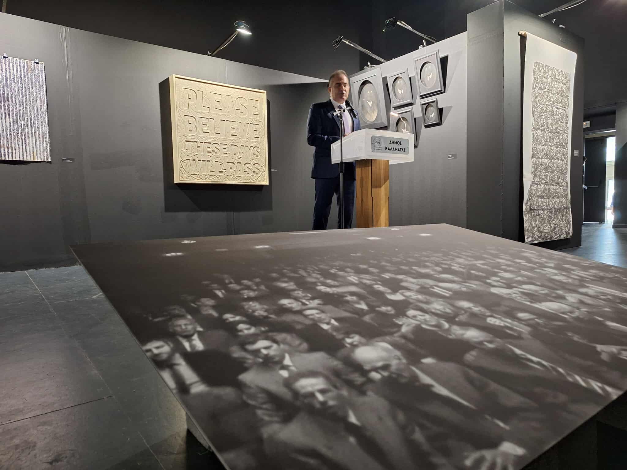 Την σπουδαία έκθεση παρουσίασαν ο καλλιτεχνικός διευθυντής του Εικαστικού Τομέα της Κ.Ε. Φάρις Παναγιώτης Λαμπρινίδης και η επιμελήτρια της έκθεσης Άρτεμις Ποταμιάνου.