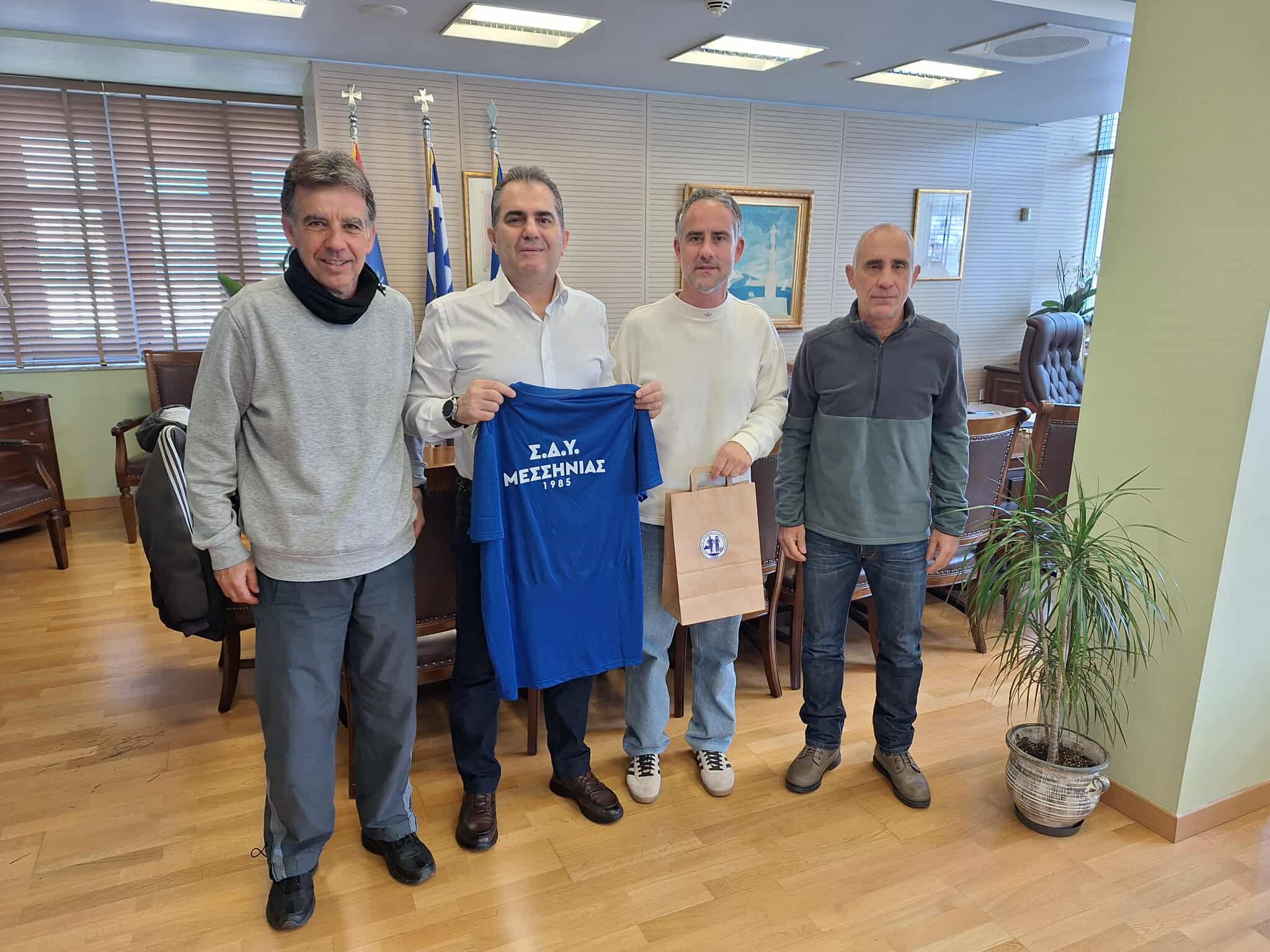 Τον Δήμαρχο Καλαμάτας Θανάση Βασιλόπουλο, επισκέφτηκε ο Πρόεδρος του Συλλόγου Δρομέων Υγείας Μεσσηνίας Θεόδωρο Διαμαντόπουλο, συνοδευόμενος από τα μέλη του Δ.Σ. Χρήστο Μπένο και Αλέξη Ζάννη, σήμερα Πέμπτη 12 Φεβρουαρίου 2026.