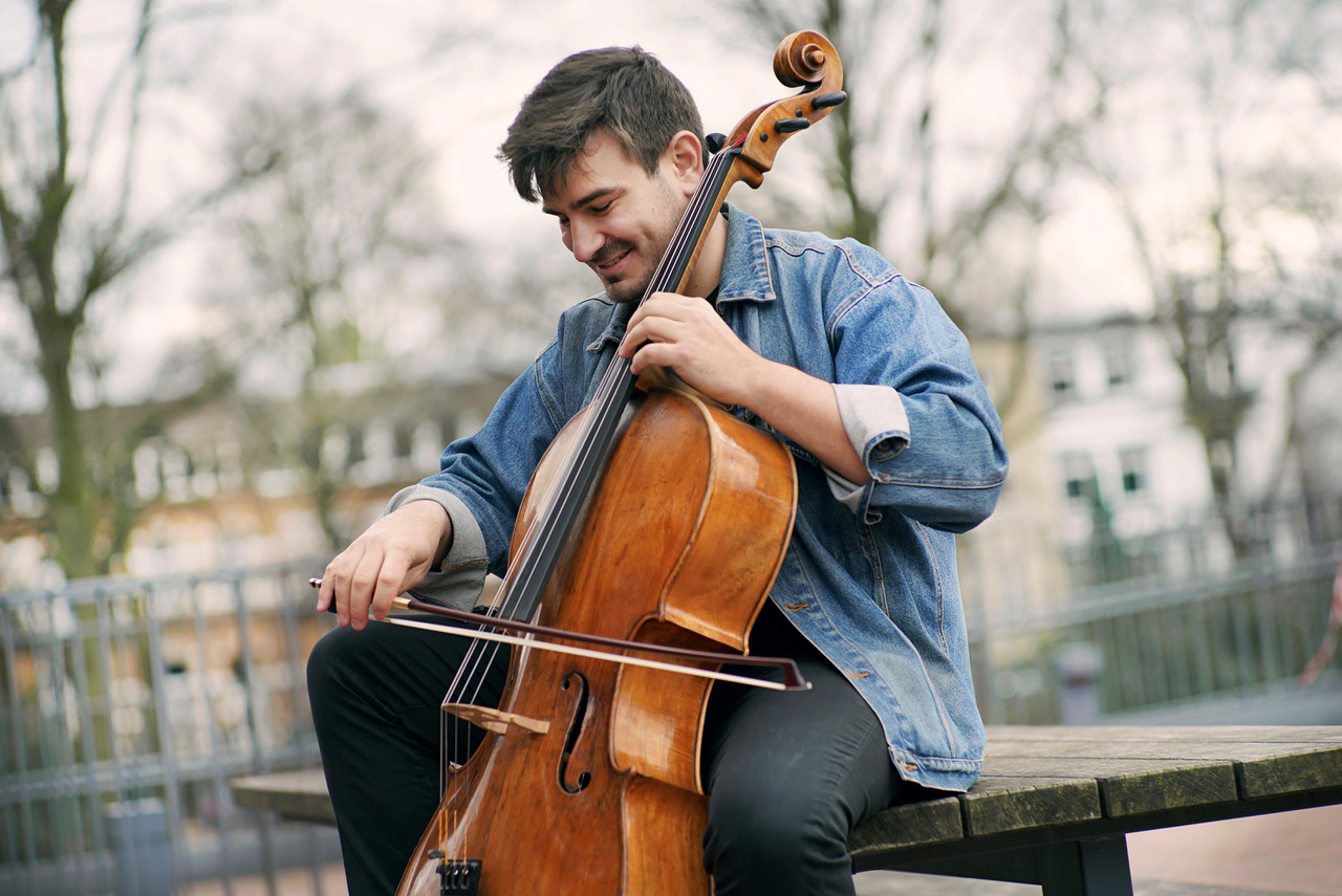 Παίζει σε ένα βιολοντσέλο κατασκευασμένο το 1723 από τον David Tecchler στη Ρώμη.