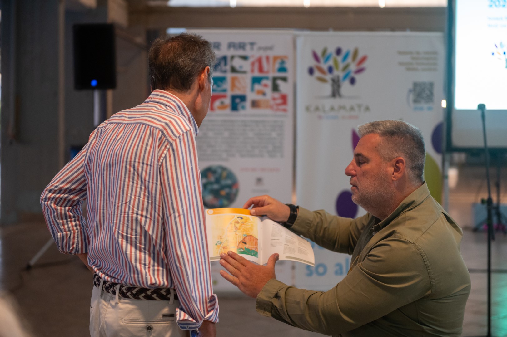 Η εκδήλωση ολοκληρώθηκε με την παρουσίαση και live ολοκλήρωση της εικαστικής παρέμβασης στο πλαίσιο του ευρωπαϊκού έργου OTRart (Creative Europe) στην Κεντρική Αγορά Καλαμάτας, από τους καλλιτέχνες Kabrit και Κώστα Λούζη, με τη μουσική συνοδεία μαθητών του Μουσικού Σχολείου Καλαμάτας.