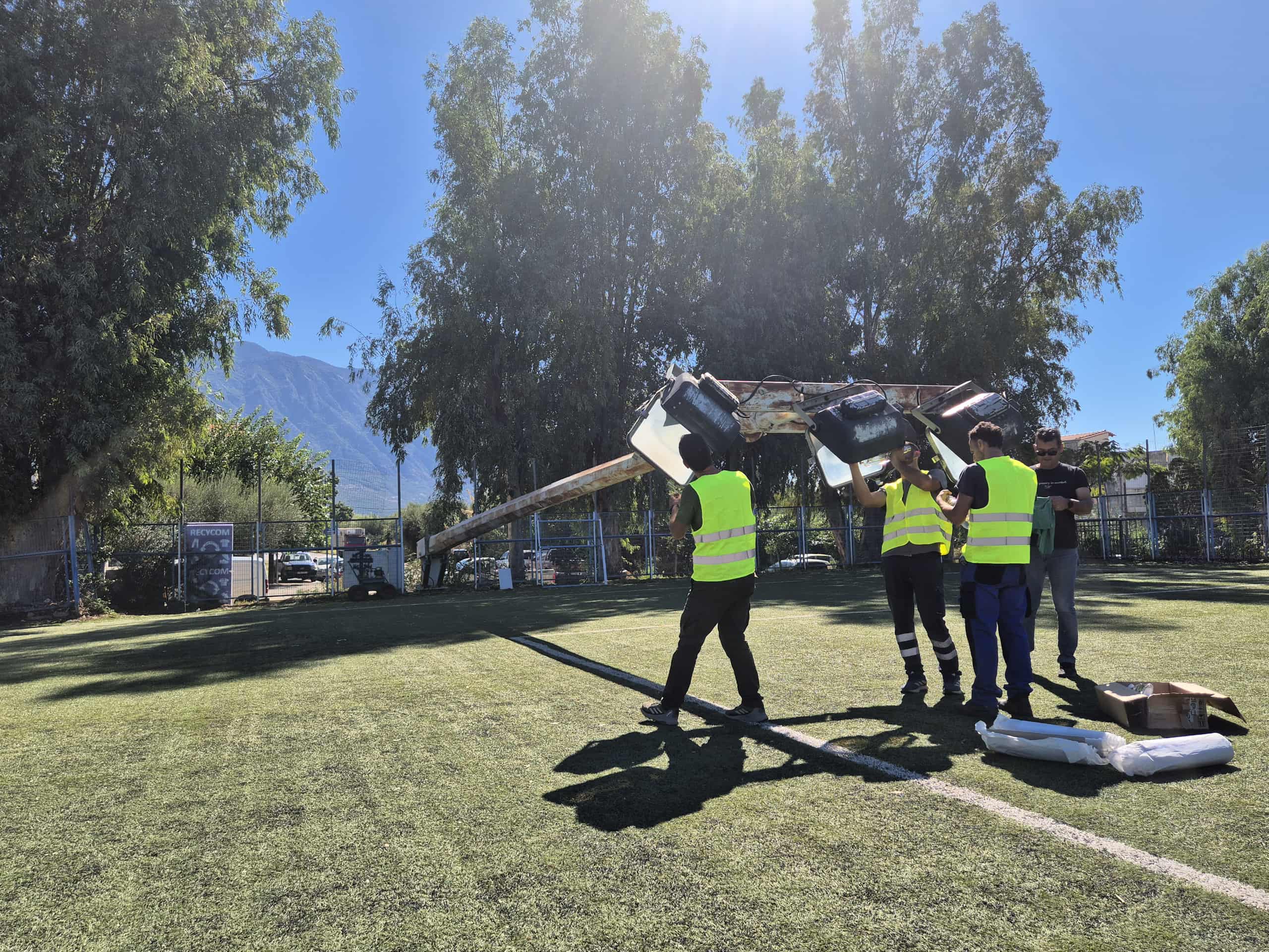 Οι εργασίες βελτίωσης και συντήρησης στο Δημοτικό Γήπεδο Ποδοσφαίρου Π. Μπαχράμης συνεχίζονται με σταθερό ρυθμό και ήδη αποδίδουν σημαντικά αποτελέσματα. Ο χώρος αναβαθμίζεται ουσιαστικά, με στόχο την ασφάλεια, τη λειτουργικότητα και την αισθητική του ανανέωση προς όφελος όλων των χρηστών του.