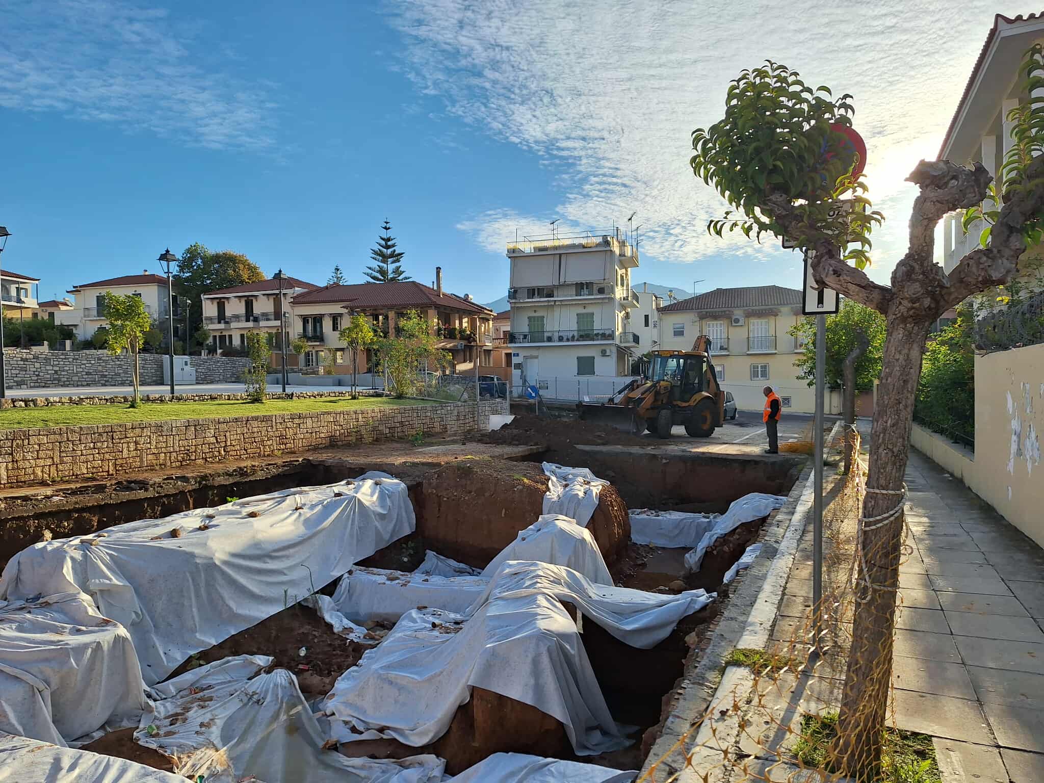 Μετά την ολοκλήρωση της ανασκαφικής έρευνας από την Εφορεία Αρχαιοτήτων Μεσσηνίας, εκκίνησαν -υπό την επίβλεψη αρχαιολόγου- οι εργασίες κατάχωσης των καταλοίπων που αποκαλύφθηκαν επί της οδού Χρυσοστόμου Θέμελη.