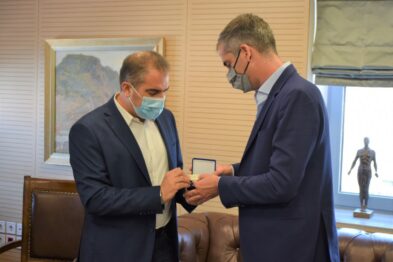 Η πολύ καλή συνεργασία των Δήμων Καλαμάτας και Αθηναίων επιβεβαιώθηκε κατά τη συνάντηση των Δημάρχων Θανάση Βασιλόπουλου και Κώστα Μπακογιάννη στο Δημαρχείο Καλαμάτας, σήμερα Παρασκευή 17 Σεπτεμβρίου 2021.